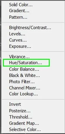 مرحله اول: اضافه کردن یک Hue/Saturation Adjustment Layer