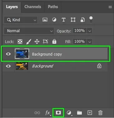 به منظور اضافه کردن یک ماسک لایه، دقت کنید که لایه صحیحی را انتخاب کرده باشید (لایه جدید). سپس روی آیکن Layer Mask کلیک کنید. این آیکن در بخش پایینی پنل لایهها در نرمافزار فتوشاپ قرار دارد.