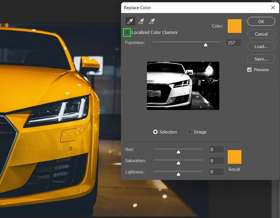 اگر میخواهید که تغییر رنگ تنها بخشهایی هممرز و نزدیک به منطقهای که انتخاب کردهاید را شامل شود، تیک گزینهی Localized Color Clutsters را انتخاب کنید. در غیر این صورت، نیازی به انجام این کار نیست.