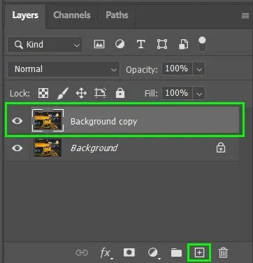 برای تکثیر لایهی پسزمینه، با استفاده از نشانگر موس روی آن کلیک کرده، آن را کشیده و روی دکمهی Create a new Layer که در بخش پایینی پنل لایه قرار گرفته، رها کنید (همانند عکس زیر). شما همچنین میتوانید از دکمههای Control + J در ویندوز و یا Command + J در سیستم عامل مک استفاده کنید.