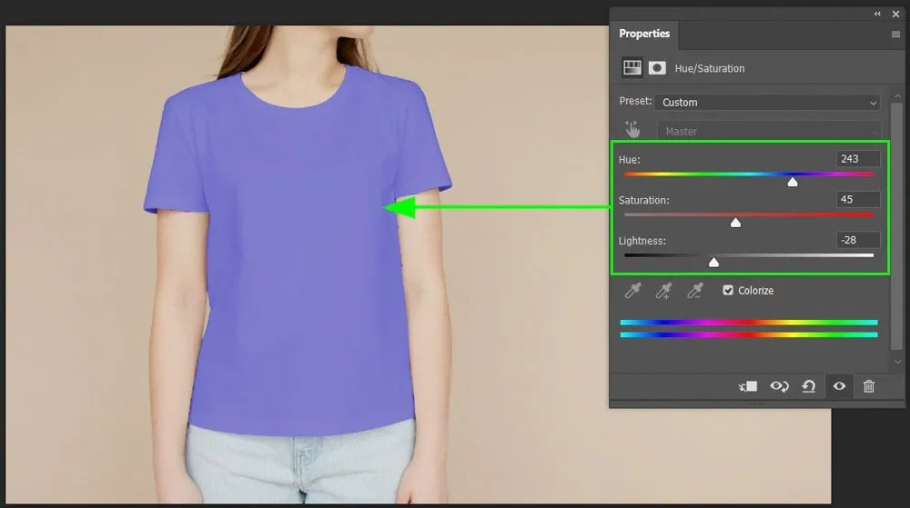 با استفاده از ویژگی Colorize Adjustment، شما میتوانید طیف و انواع مختلفی از رنگ را برای محیط انتخابی خود به کار بگیرید. این روش روی انواع طیفها و سایههای رنگی به خوبی پاسخگو است.