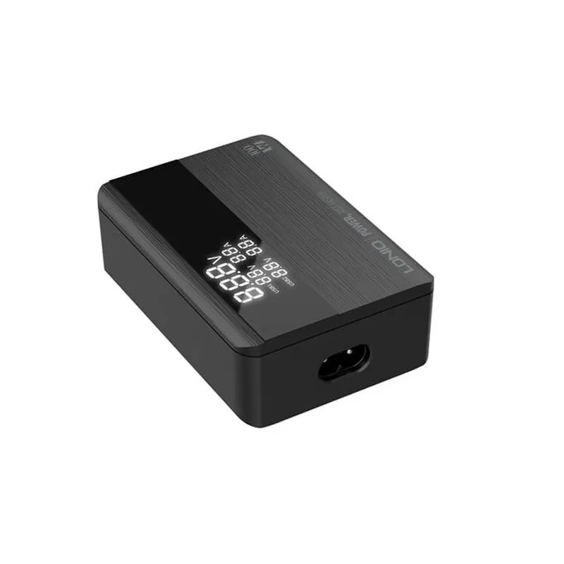 این شارژر رومیزی که با فناوری ساخت گالیم نیترات GaN طراحی شده، از مواد PC نسوز و مقاوم تا 850 درجه سانتی گراد ساخته شده و به عنوان هاب شارژر مورد استفاده قرار میگیرد. روی بدنه آن یک صفحه نمایش دیجیتالی قرار گرفته تا میزان ولتاژ و شدت جریان شارژ را به شما نمایش دهد. همچنین این محصول از پروتکلهای فست شارژ QC4.0, PD3.0, SCP, VOOC, AFC, FCP و Auto ID پشتیبانی میکند. درگاه USB-C این محصول با توان 100 وات، مناسب شارژ لپتاپ نیز است. چیپست موجود در این شارژر مجهز به تکنولوژی PD قابلیت کنترل ولتاژ را دارد.