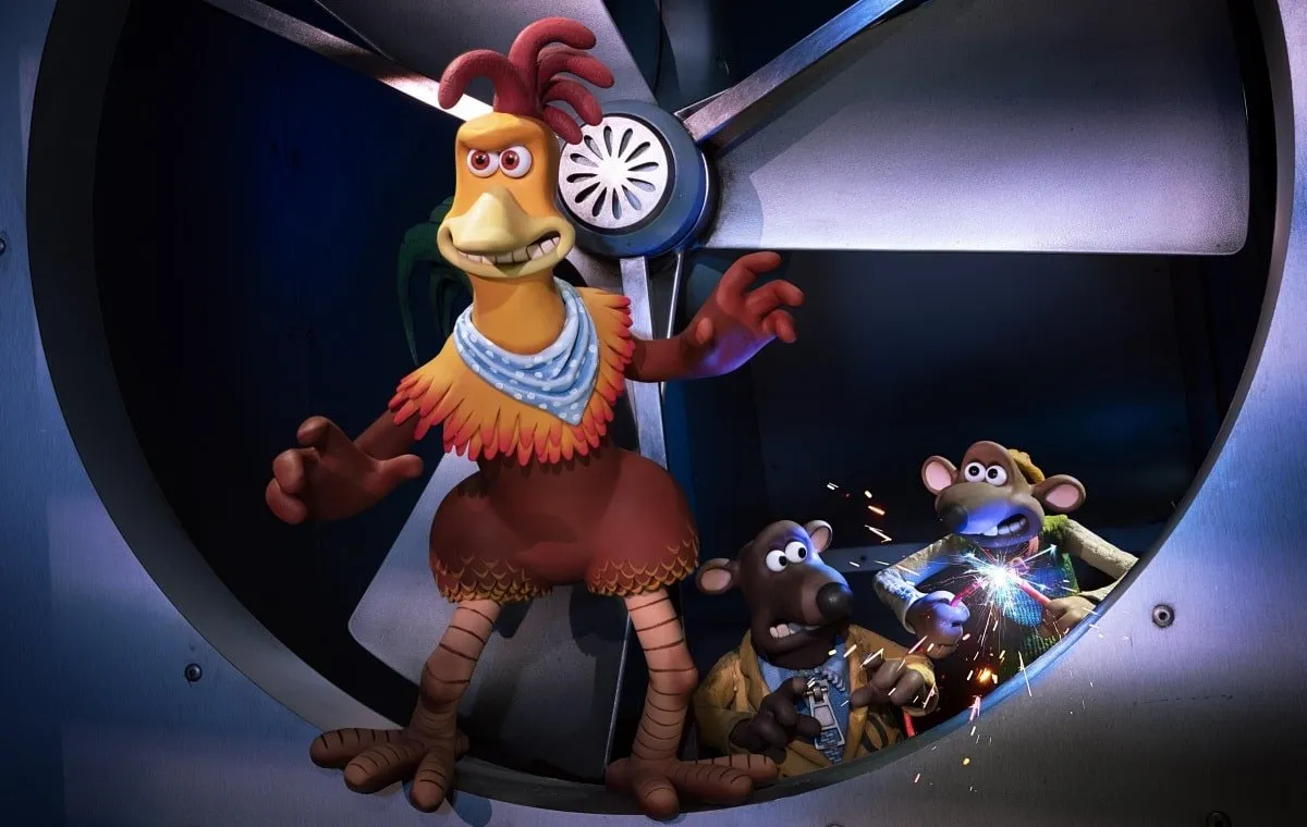 انیمیشن فرار مرغی: طلوع ناگت سپس با چند ستپیس اکشن درجهیک ادامه پیدا میکند که نوآوریهای دیوانهوار و کمدی اسلپاستیک مشهور استودیوی آردمن نیز در آنها به چشم میخورد. بعد از اینکه مالی ناپدید میشود، راکی، جینجر و دیگر مرغهای فیلم اول (به همراه نیک و فچر، دو موش که ظاهرا مهارت ویژهای در ساختوساز دارند) یک گروه نجات تشکیل میدهند و سفری را برای یافتن دخترک آغاز میکنند. حتی عناصر دیستوپیایی فیلمهای علمی-تخیلی را هم انجام پیدا میکنید، زیرا شخصیتها در بخشی از قصه، درون یک مرغداری فوقپیشرفته گرفتار میشوند که مرغهای آنجا قلادهای به گردنشان بسته شده است که آنها را به زامبیهای احمق و خوشحال تبدیل میکند (زیرا مرغهای خوشحال در مقایسه با مرغهای مضطرب و ترسو گوشت خوشمزهتری دارند. اتفاق خوبی است که استودیوی آردمن علاقهاش به کمدی سیاه را هم اینجا به شکل نامحسوس به نمایش گذاشته است).
