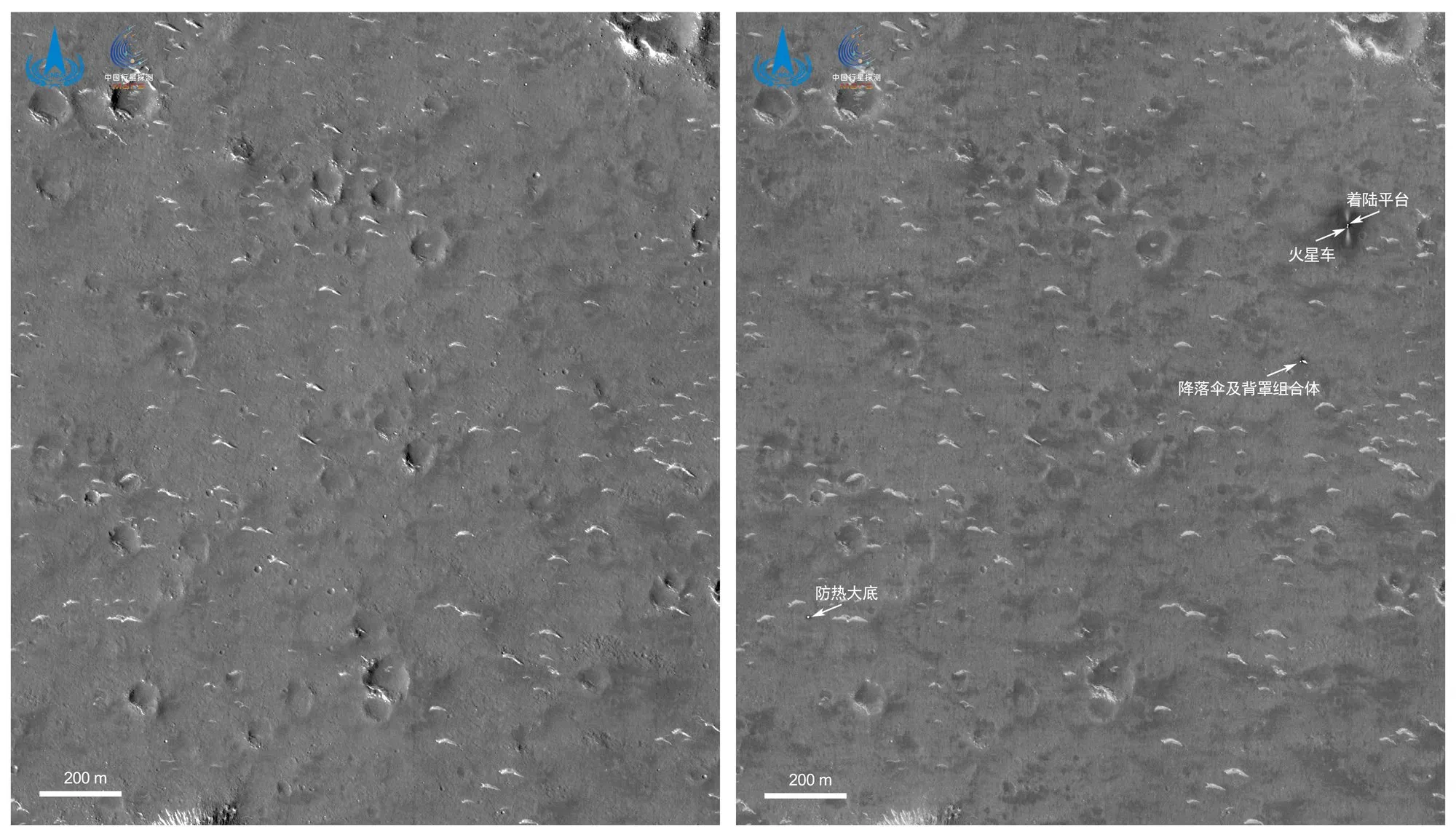 تصویری که تیم کاوشگر «مدارگرد شناسایی مریخ» (Mars Reconnaissance Orbiter) منتشر کرده است، ژورونگ را به فاصلهی کمی از سطحنشین تیانون-1 نشان میدهد و این علاوه بر یک منظرهی تماشایی، نخستین تأیید مستقل از موفقیت مأموریت مریخی چین است.
