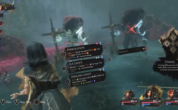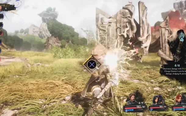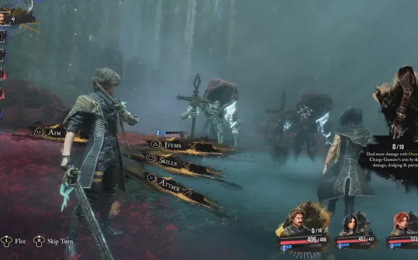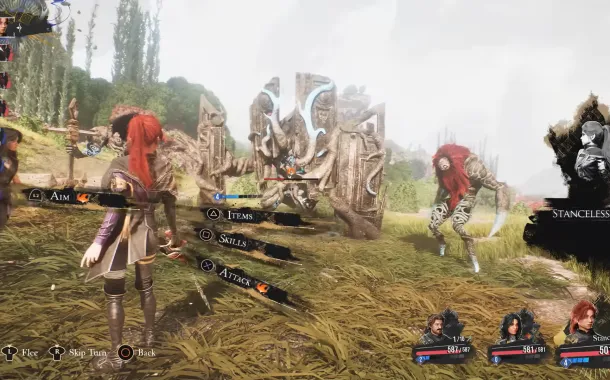 البته برعکسش هم صادق است و اگر دشمن سطح بسیار بالاتری داشته باشد، باز هم میتوان او را شکست داد به شرطی که تمام الگوهای حملهاش را حفظ کنیم و زمانبندی را دقیق رعایت کنیم. در مورد باسهای سختتر، معمولاً ترکیبی از این دو عامل لازم است. به نظر من، بازی به شکلی عالی بین نقشآفرینی و اکشن تعادل برقرار کرده، بدون اینکه ماهیت نوبتی بودن مبارزات از بین برود. این تنها نکتهی مثبت مبارزات نیست؛ یکی از بهترین ویژگیهای آن این است که هر شخصیت کاملاً متفاوت طراحی شده است و نه صرفاً در ظاهر، بلکه برای اینکه بتوانید از هر کدام به خوبی استفاده کنید، باید درک دقیقی از سازوکار مبارزهی آنها داشته باشید، چون هر شخصیت روش کاملاً خاصی برای مبارزه دارد و صرفاً زدن قویترین قابلیت کارساز نیست. میتوان امتیازهایی که با ارتقای سطح کسب میشوند را در میان ویژگیهای مختلف شخصیتها توزیع کرد و این ویژگیها با سلاحها همراستا میشوند که آنها هم قابل ارتقاء هستند.