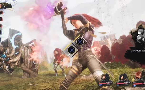 مبارزات زمانی آغاز میشوند که با دشمنان تماس پیدا میکنیم و به صورت نوبتی انجام میگیرند، اما عناصر زیادی از گیمپلی همزمان در آنها وجود دارد. بعد از انتخاب عملی که میخواهید انجام دهید که بسته به نوع حرکت، مقدار مشخصی از اکشن پوینت مصرف میکند که به روشهای مختلف قابل شارژ است، باید در زمان مناسب دکمهای را فشار دهید تا اثربخشی حمله یا دفاع افزایش یابد. به عنوان مثال میتوانیم با فشردن دکمهها در لحظهی دقیق، آسیب بیشتری وارد کنیم، با نشانهگیری دستی به نقاط ضعف دشمن از راه دور آسیب وارد کنیم، جاخالی بدهیم یا حتی ضدحمله انجام دهیم. تا اینجا ممکن است ساده به نظر برسد و حتی خطر تکراری شدن داشته باشد، اما توسعهدهندهگان به سرعت بازی را با مواردی مانند پرش که تنها واکنش ممکن به برخی حملات خاص است و حتی میتواند به یک ضدحمله تبدیل شود یا پریهای ویژه که تنها راه مقابله با برخی ضربات مرگبار هستند، پیچیدهتر میکنند. در نتیجه، بازی واکنشهای مختلفی را برای مقابله با دشمنانی متنوع با حرکات، ترکیبها و تواناییهای خاصشان از شما طلب میکند.