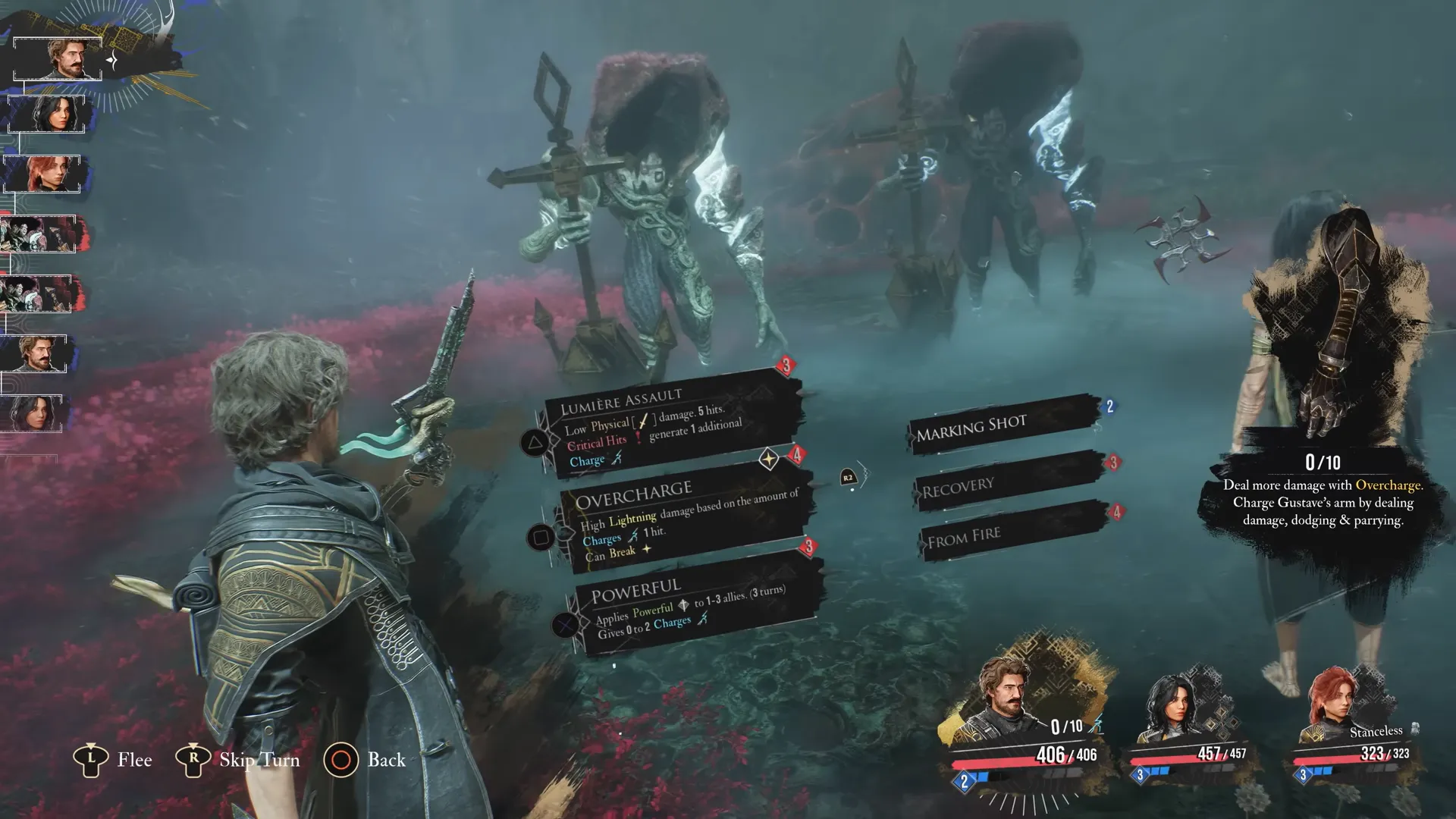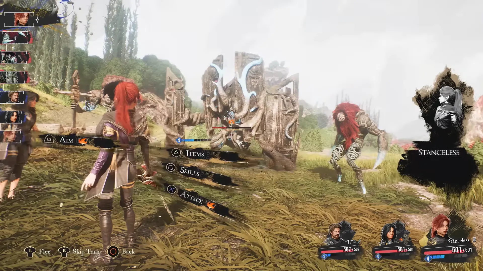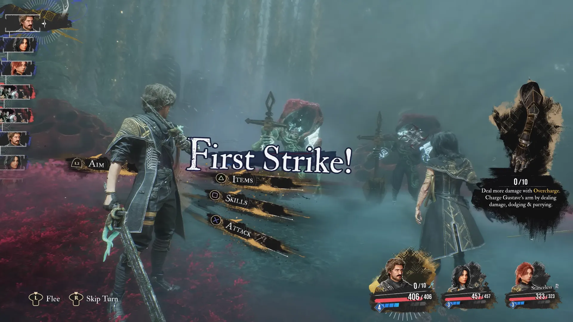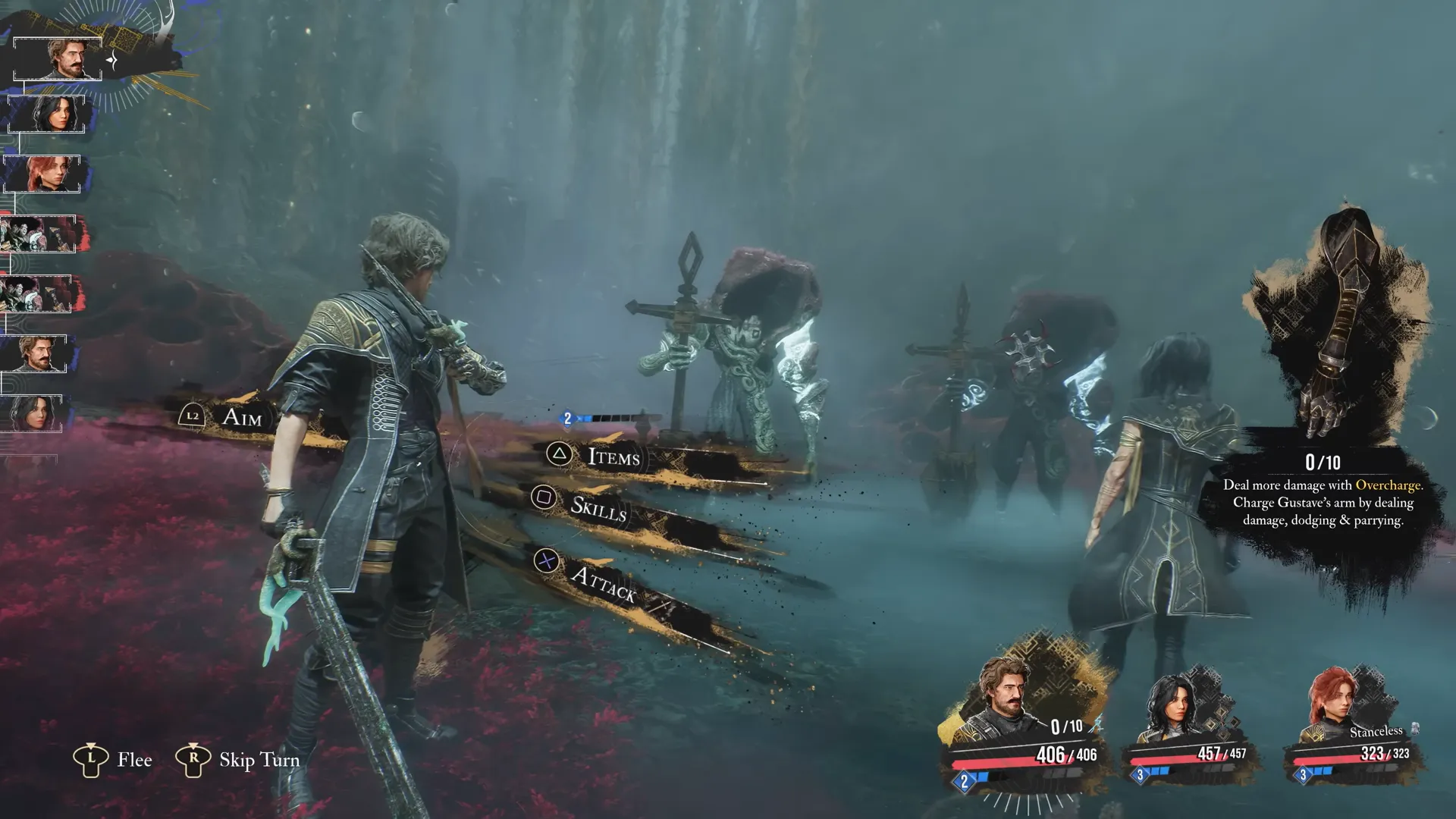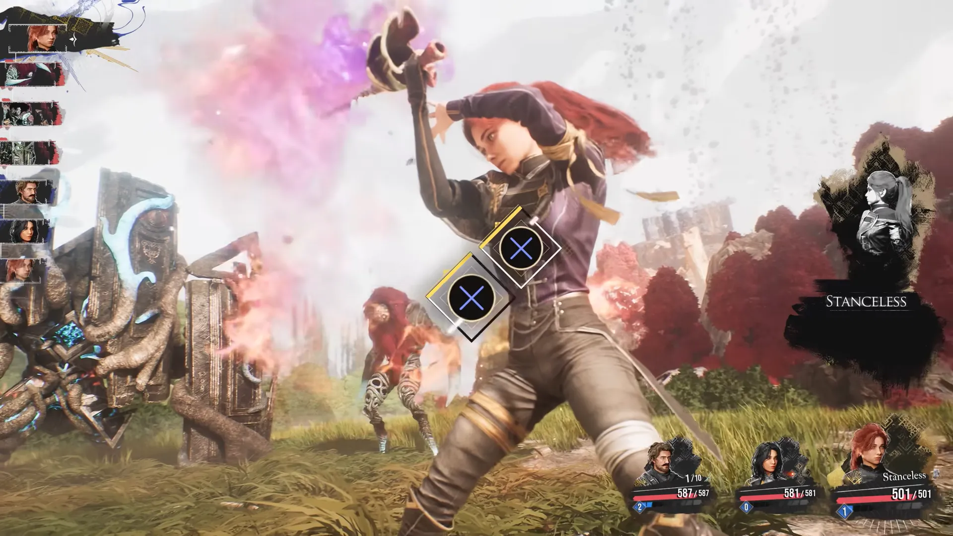 البته برعکسش هم صادق است و اگر دشمن سطح بسیار بالاتری داشته باشد، باز هم میتوان او را شکست داد به شرطی که تمام الگوهای حملهاش را حفظ کنیم و زمانبندی را دقیق رعایت کنیم. در مورد باسهای سختتر، معمولاً ترکیبی از این دو عامل لازم است. به نظر من، بازی به شکلی عالی بین نقشآفرینی و اکشن تعادل برقرار کرده، بدون اینکه ماهیت نوبتی بودن مبارزات از بین برود. این تنها نکتهی مثبت مبارزات نیست؛ یکی از بهترین ویژگیهای آن این است که هر شخصیت کاملاً متفاوت طراحی شده است و نه صرفاً در ظاهر، بلکه برای اینکه بتوانید از هر کدام به خوبی استفاده کنید، باید درک دقیقی از سازوکار مبارزهی آنها داشته باشید، چون هر شخصیت روش کاملاً خاصی برای مبارزه دارد و صرفاً زدن قویترین قابلیت کارساز نیست. میتوان امتیازهایی که با ارتقای سطح کسب میشوند را در میان ویژگیهای مختلف شخصیتها توزیع کرد و این ویژگیها با سلاحها همراستا میشوند که آنها هم قابل ارتقاء هستند.