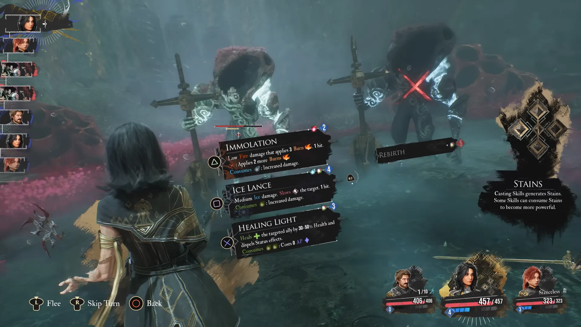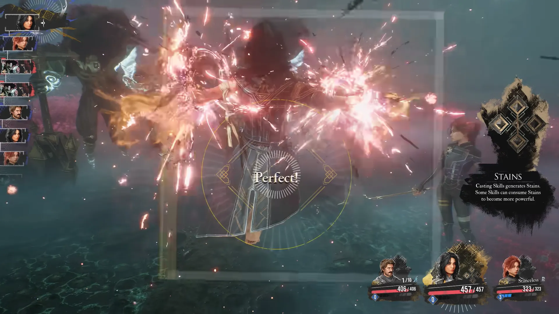 تمام این ویژگیها دست به دست هم دادهاند تا نتیجهی نهایی تبدیل به یکی از جذابترین سیستمهای مبارزات نوبتی تاریخ شود. به شخصه مبارزات نوبتی از سبکهای مورد علاقهام نیست و به همین خاطر تنها به تجربهی بهترین آثار این سبک میپردازم. با در نظر گرفتن این موضوع و اینکه ساعتهای زیادی صرف بازی کردهام، اما هنوز هم وقتی دشمنی را میبینم، دلم میخواهد با او بجنگم و این خیلی چیز مهمی است در یک بازی نقشآفرینی نوبتی، چون معمولاً در بیشتر چنین بازیهایی، خسته شدن پس از مدتی طبیعی است. اما اینجا کاملاً اوضاع برعکس است و همیشه میخواهید مبارزه کنید. تنها ایرادی که میتوان به این سیستم مبارزهی جذاب وارد کرد، استفاده از روش آزمون و خطاست؛ موضوعی که توجیهکنندهی وجود فراوان چکپوینتها در بازی است. اغلب لازم است چند بار با دشمنان تازه روبرو شویم تا الگوهای حملهشان را یاد بگیریم؛ به همین دلیل، مبارزات اولیه مخصوصاً در برابر باسها معمولاً با شکستهای سنگینی همراه است.