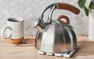 9. خاموش کردن حرارت و خنک شدن: بعد از 15 تا 20 دقیقه جوشیدن، کتری را از روی حرارت بردارید و اجازه دهید کمی خنک شود. احتیاط کنید، آب داخل کتری بسیار داغ است.