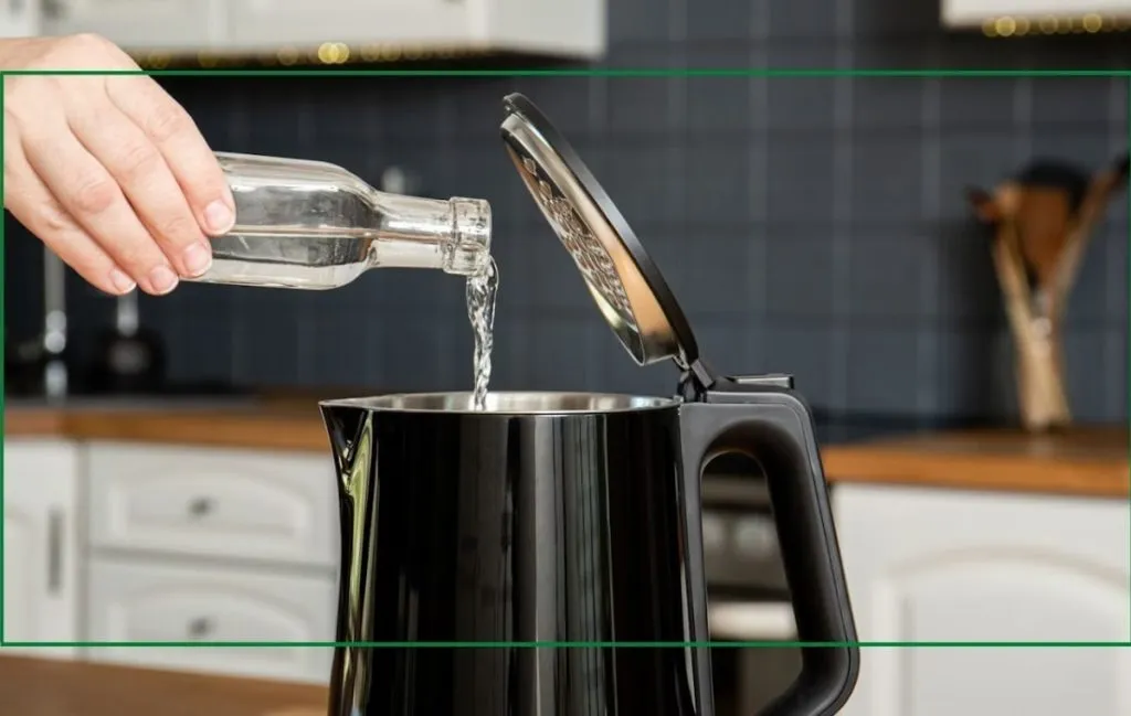 3. کتری را با آب پر کنید: کتری را با آب پر کنید تا محلول سرکه و جوش شیرین به خوبی در تمام قسمتهای رسوبدار پخش شود.