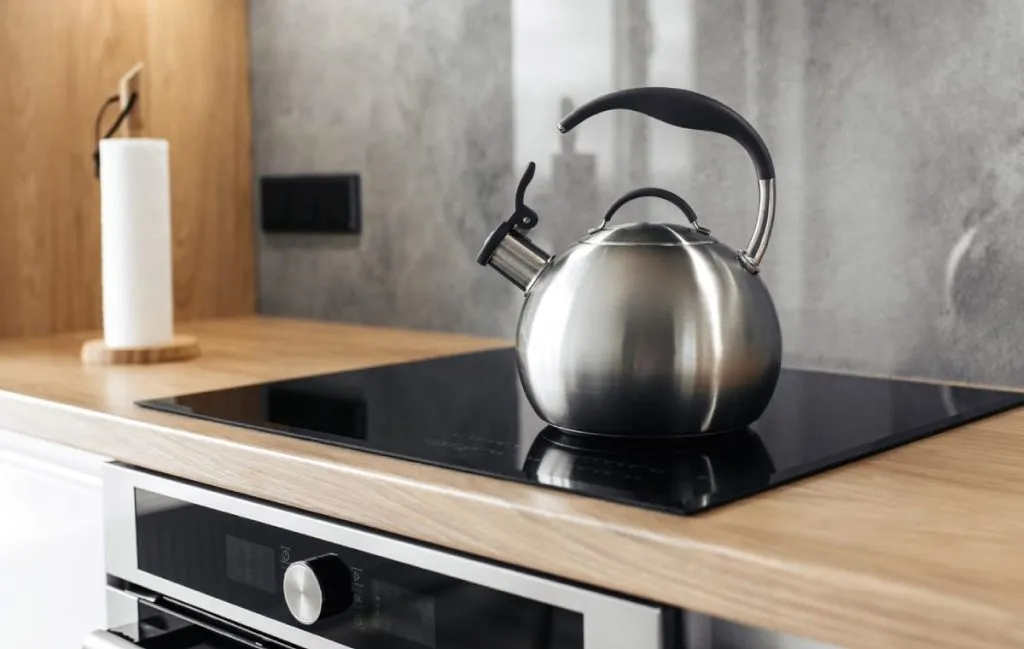 2. بجوشانید (اختیاری): برای رسوبهای بسیار ضخیم، میتوانید کتری را روی اجاق بگذارید و اجازه دهید حدود 10 تا 15 دقیقه بجوشد. این کار به جدا شدن سریعتر رسوبات کمک میکند.