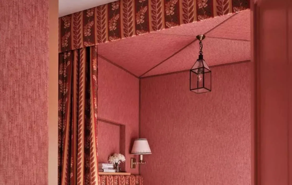 قرمز و صورتی به طور طبیعی با هم هماهنگ میشوند. بنابراین، جای تعجب نیست که قرمز یاقوتی تیره رنگ هماهنگ با مرجانی باشد. این دو در کنار هم فضایی رمانتیک را ایجاد میکنند، اتاق خوابی با رنگهای قرمز تیره تودوزی و پردهها و همچنین کاغذ دیواری مرجانی در سراسر دیوارها اتاق خوابی شیک و جذاب است.