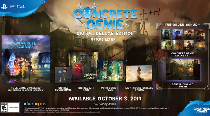 بالاخره تاریخ عرضه بازی Concrete Genie پس از چندین بار تاخیر خوردن، مشخص شد. این اثر در روز 16 مهر برای کنسول پلیاستیشن 4 با قیمت 30 دلار عرضه خواهد شد. نسخه دیلاکس ادیشن بازی هم در همین روز با قیمت 40 دلار منتشر میشود. علاوه بر این خبر، استودیو Pixelopus (سازنده اثر) اعلام کرد که بازی در زمان عرضه حالت فوتو مود خواهد داشت.