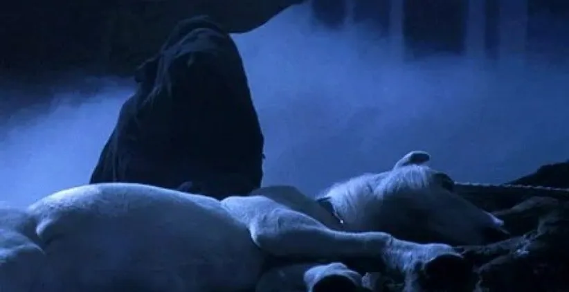 در این بخش از فیلم، هری و دوستانش را برای تنبیه به جنگل ممنوعه و مرگبار کنار هاگوارتز فرستادهاند، جنگلی مخوف سرشار از عنکبوتهای وحشتناک و سنتورهای بدبین. در همین گیر و دار، هری در گوشهای از جنگل ممنوعه با تصویر دلخراشی مواجه میشود؛ تکشاخی روی زمین افتاده و موجودی ترسناک و شنلپوش که صورتش پیدا نیست، مشغول مکیدن خون آن است.