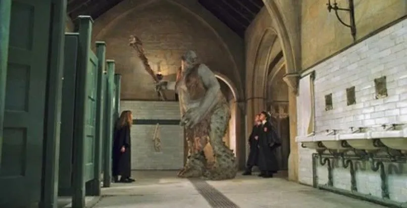 اما وقتی در شب هالووین، پروفسور کوییرل فریادزنان از حضور یک غول غارنشین در مدرسه گفت و بیهوش شد، اوضاع هری تغییر کرد. بقیهی بچههای هاگوارتز وحشتزده سمت خوابگاههای خودشان رفتند، اما هری و رون که میدانستند هرمیون دقیقا همانجایی است که غول غارنشین رفته، برای نجات او دست به کار شدند. اینگونه بود که یکی از جذابترین بخشهای فیلم اول خلق شد و هری و رون و هرمیون با کمک هم یک غول غارنشین بزرگ را شکست دادند.