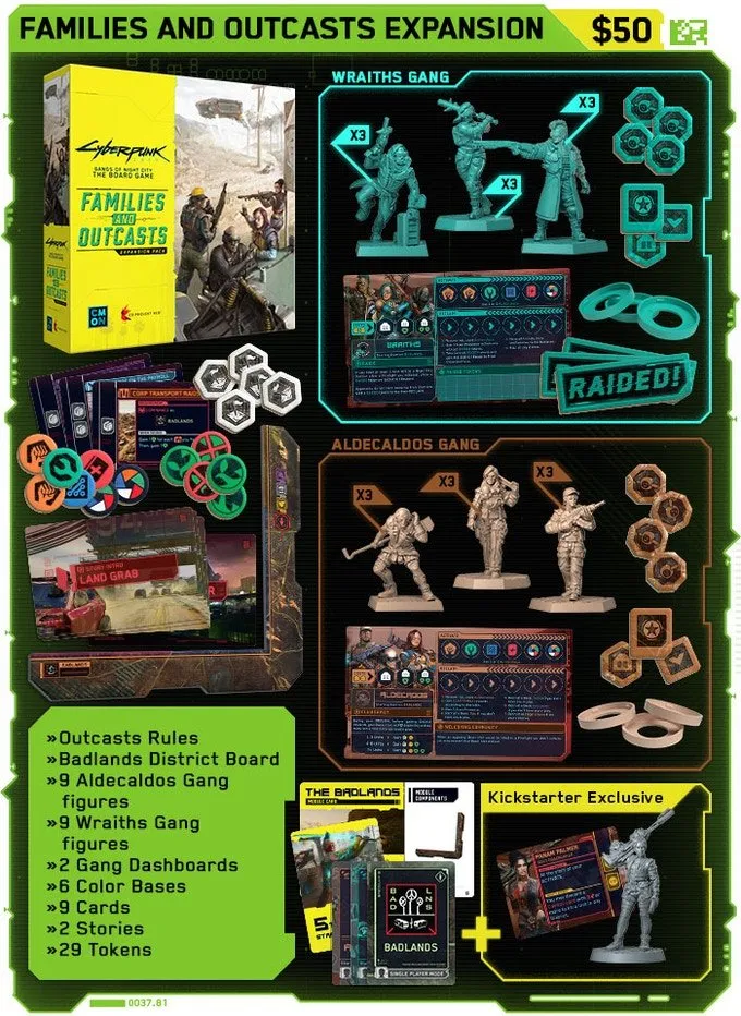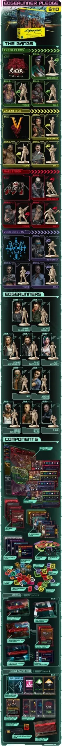 به نظر میرسد که زیباییشناسی این بازی کاملا از منبع اقتباس خود یعنی سایپربانک 2077 الهام گرفته است. در این میان شاهد انبوهی از مینیاتورهای پلاستیکی رنگ نشده هستیم که بر اساس شخصیتهای درون بازی طراحی شدهاند. در واقع بازیکنان میتوانند انتظار داشته باشند که جکی ولز، جانی سیلورهند و جودی آلوارز را در میان شخصیتهای دیگر ملاقات کنند. سفارش Cyberpunk 2077: Gangs of Night City از طریق کیکاستارتر جوایز انحصاری مختلفی را برای شما به ارمغان میآورد که از بین آنها میتوان به مینیاتورهایی از شخصیت وی، اولین پارکر، سندرا دورست و غیره اشاره کرد.