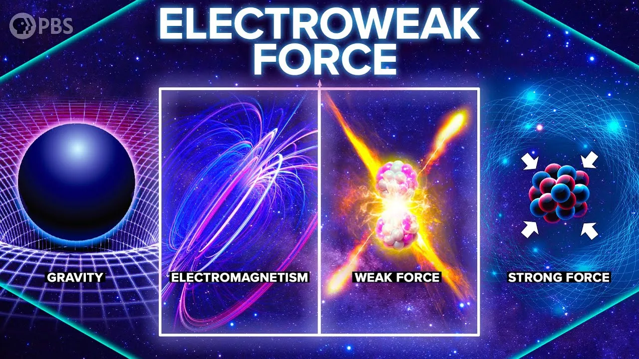 همهاش با یک فرمول ریاضیاتی به نام کوانتوم مکانیک بهوجود آمد، و بعد رسیدیم به نظریات حوزهی کوانتومی که مکانیک کوانتومی را به فیزیک تعمیم میدهد تا از آنها مدلی بوجود آورد تا تعاملات فیزیکی را توضیح دهد: اتمها چگونه کنار هم میمانند؟ بهخاطر الکترومغناطیس است. چگونه هسته ثبات پیدا میکند؟ بخاطر نیروی اتمی قوی است است. چگونه اتمها دچار زوال رادیواکتیوی میشوند؟ بهخاطر نیروی اتمی ضعیف است. و چگونه جرم به خودش کشیده میشود؟ بخاطر جاذبه است.