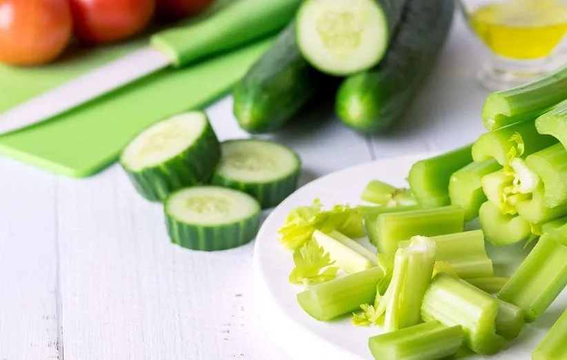نشان داده شده که کیوی نفخ و یبوست را کاهش میدهد و سیستم ایمنی بدن را تقویت میکند. خیار سرشار از ویتامینهای C و K است.