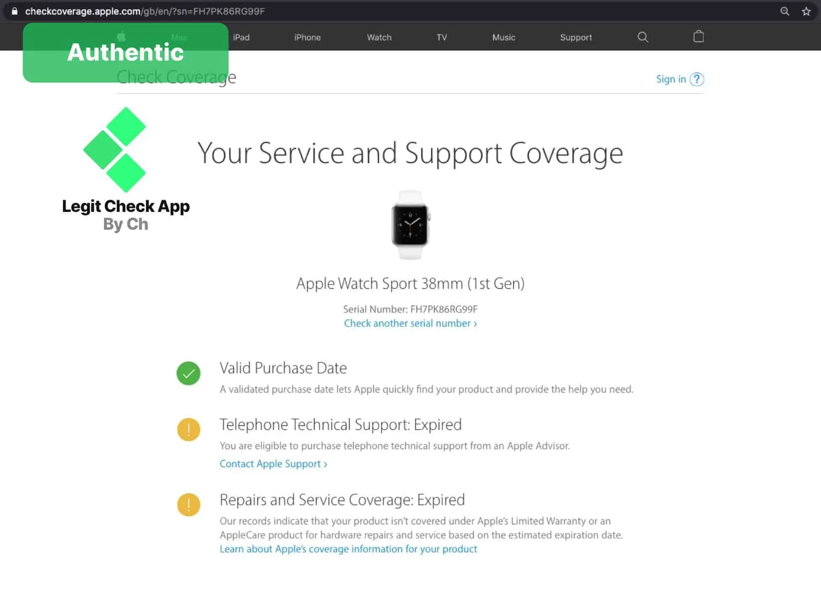 پس از یافتن شماره سریال، میتوانید آن را در وبسایت رسمی اپل بررسی کنید. برای این کار به وبسایت Check Coverage اپل مراجعه کنید و شماره سریال را وارد کنید. این وبسایت اطلاعات دقیقی درباره وضعیت گارانتی، تاریخ تولید و سایر جزئیات محصول را به شما ارائه میدهد. اگر شماره سریال وارد شده معتبر و مرتبط با یک اپل واچ اصلی باشد، تمامی اطلاعات به درستی نمایش داده خواهد شد.