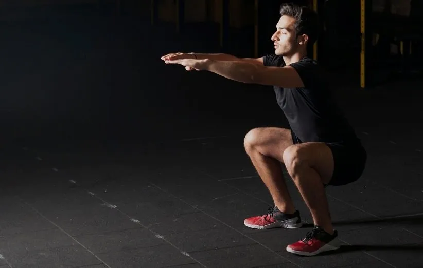 اکنون بنشینید و حرکت را اجرا کنید، به گونهای که انگار میخواهید روی یک صندلی بنشینید. باید احساس کنید که پاشنهی پاها میخواهد درون زمین فرو برود. زانوها باید هممسیر با انگشت میانی پاها باشند. تا جایی پایین بروید که رانها با زمین موازی شوند، سپس با فشار آوردن به پاشنهها و سفت کردن ماهیچههای باسن به حالت آغازین برگردید.
