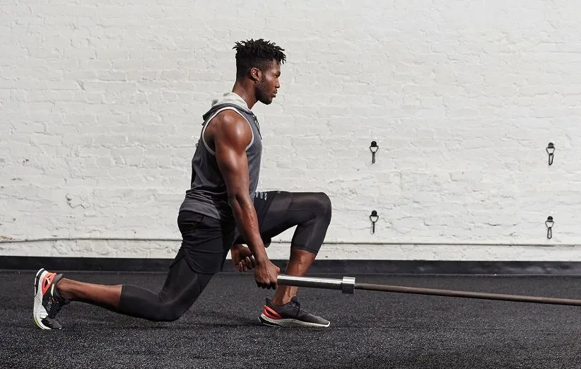 برای اجرای این تمرین ابتدا بایستید و پاها را به اندازهی عرض شانه باز کنید. پای راست خود را به جلو ببرید، تا اندازهای که مرکز ثقل شما در وسط قرار بگیرد. بدن خود را پایین ببرید تا جایی که زانوی پای چپ چند سانتیمتر با زمین فاصله داشته باشد، سپس دوباره بایستید. شما میتوانید دستانتان را روی باسن بگذارید، کنار بدن دراز کنید یا بالای سرتان قرار دهید.