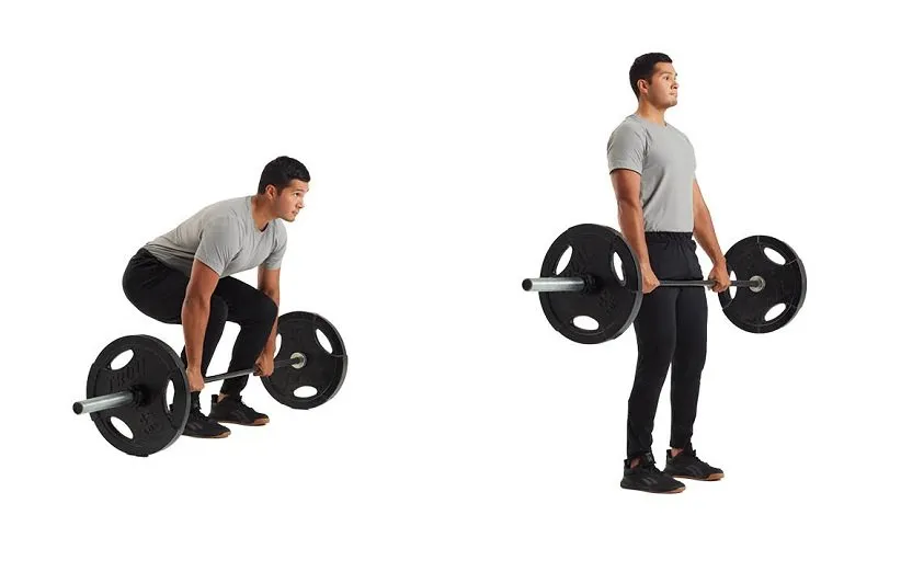 اکنون زانوهای خود را خم کنید تا ساق پاهایتان میله را لمس کند. قفسهی سینهتان را هم بالا ببرید و کمرتان را سفت و محکم نگه دارید. سپس نفس بگیرید، آن را در سینه نگه دارید و هالتر را از روی زمین بلند کنید و بایستید. وزنه را برای یک ثانیه نگه دارید و زانوها و باسن خود را سفت کنید. سپس هالتر را با حرکت دادن باسن به عقب و خم کردن زانوها روی زمین بگذارید. یکی دو ثانیه مکث کنید و دوباره هالتر را بالا ببرید. این چرخه را با توجه به برنامهی ورزشی خود تکرار کنید.