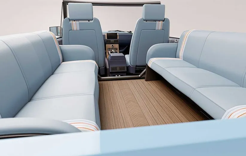 در بخش پشت راننده و سرنشین جلو، حداکثر شش سرنشین قرار میگیرند و کف این بخش از چوب گردو به رنگ موکا ساخته شده است. باید اشاره کنیم که شرکت لوناز به اندازهی کافی دست مشتریان و علاقه مندان این خودرو را برای شخصیسازی و تغییر تریم کابین این رنجروور کلاسیک برقی باز گذاشته و از این بابت هیچ محدودیتی وجود ندارد.