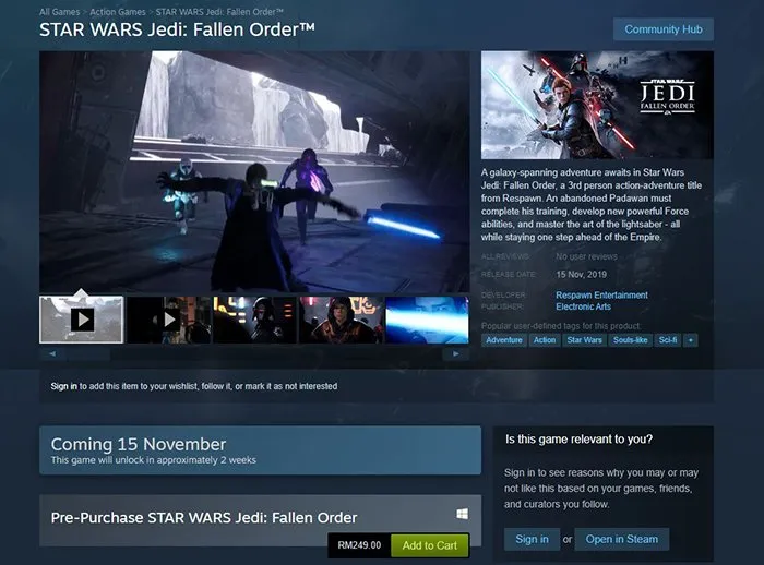 با این حال، بازگشت الکترونیک آرتز به استیم قرار است ظاهرا بزرگ و پر سر و صدا باشد. الکترونیک آرتز خبر داده است که از همین حالا میتوان بازی بزرگ بعدی این شرکت یعنی Star Wars: Jedi Fallen Order را در استیم پیشخرید کرد.