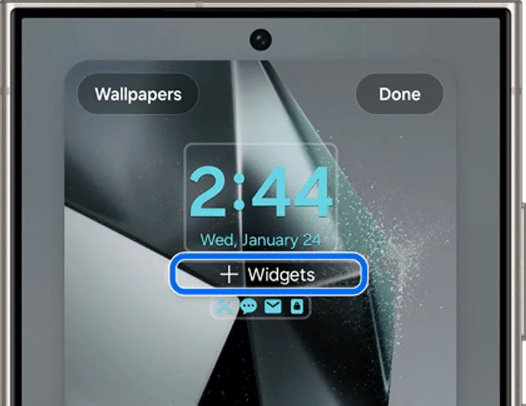 - روی صفحه قفل گوشی خود یا همان Lock Screen ضربه زده و نگه داشته باشید تا آیکونهای بالای صفحه فعال شوند.