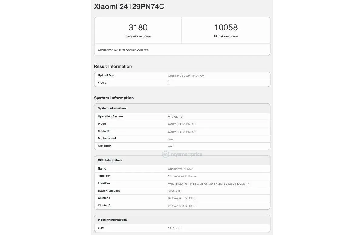 شیائومی 15 در بنچمارک گیکبنچ حضور پیدا کرد