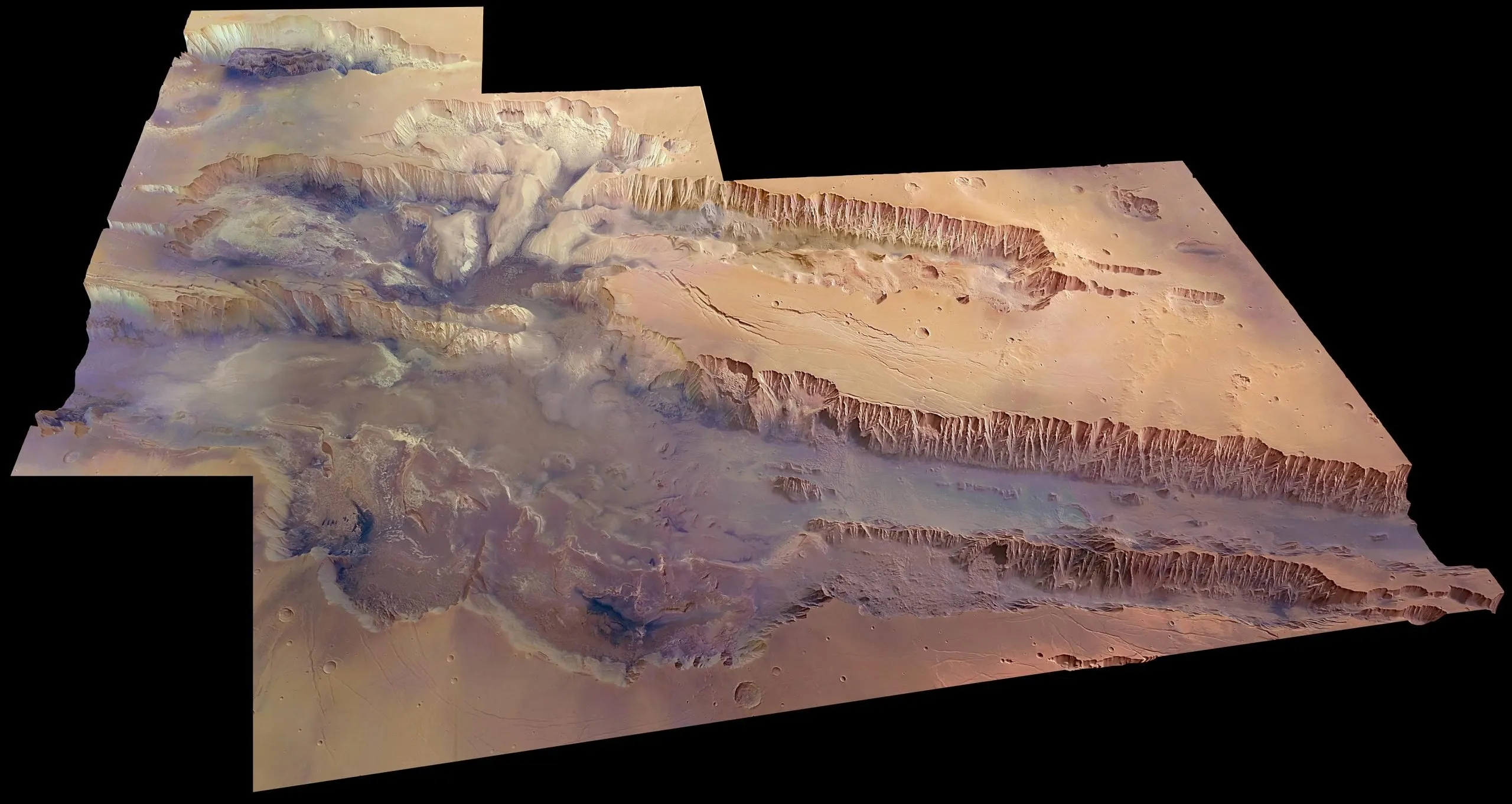 این یافته همچنین درهی مارینر را بهعنوان یک هدف امیدوارکنندهتر برای مأموریتهای اکتشافی انسانی در آینده تبدیل میکند. بزرگترین دره در منظومهی شمسی، دره مارینر، قطعا دراماتیکترین چشمانداز مریخ است و با ویژگیهایی دارد که اغلب با گرند کانیون در زمین مقایسه میشود. هرچند حتی 10 برابر از آن طولانیتر و 5 برابر عمیقتر است.