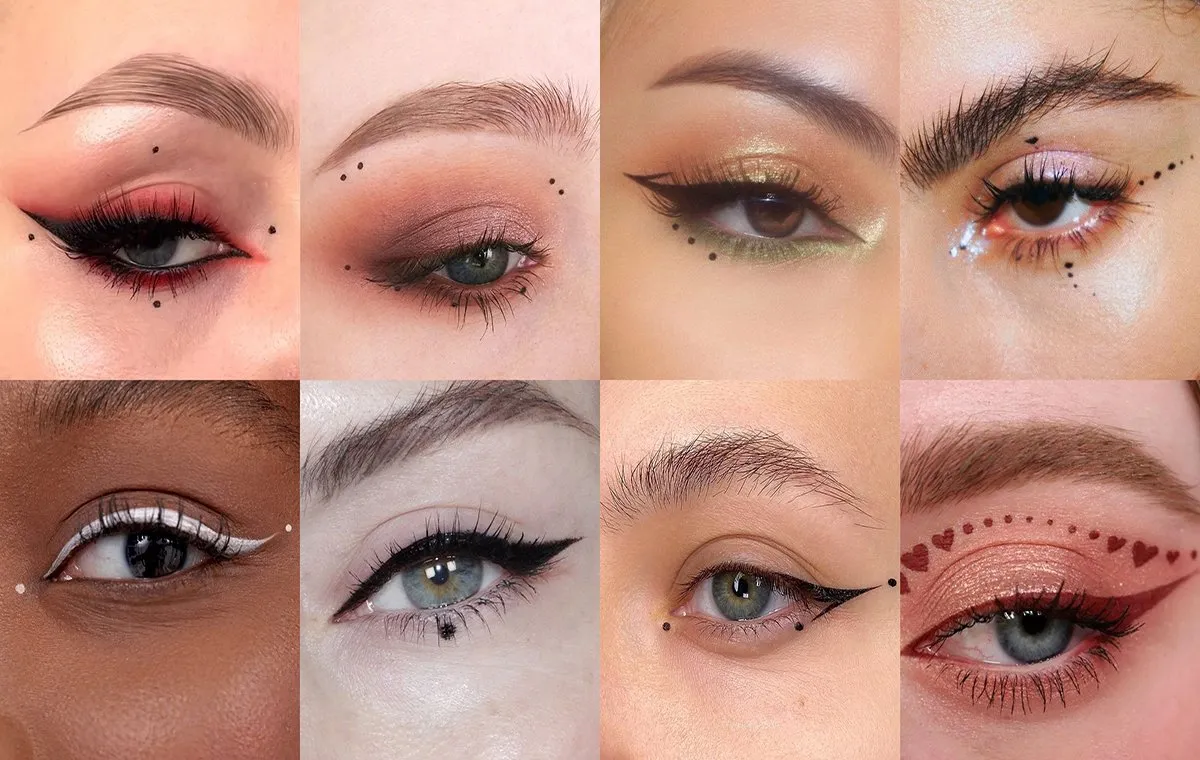 خط چشم گرافیکی به همراه نقطه یکی از مدرنترین و جدیدترین سبکهای آرایش چشم است که در آن با استفاده از قلم داتینگ یا مویی در اطراف چشمها نقطه ایجاد میکنند. این نقاط معمولا در جاهایی چون گوشهی چشم، زیر خط مژهی پایینی یا در امتداد خط چشم گذاشته میشوند تا سادگی و پیچیدگی را در کنار هم برای فرد به ارمغان بیاورند. این مدل برای کسانیکه میخواهند با آموزش خط چشم گرافیکی در خانه سبک آرایش روزانهی خود را کمی تغییر دهند بسیار مناسب است. شما حتی میتوانید برای گذاشتن نقطه و طراحی خط چشم از رنگهای مختلف استفاده نمایید تا در ظاهر خود تنوع ایجاد کنید.