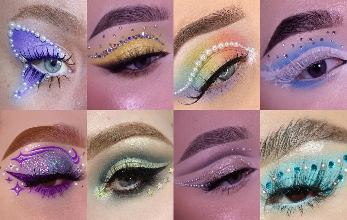 برخلاق تصور بسیاری از افراد که فکر میکنند خط چشم کشیدن در استفاده از رنگهای تیره و سایههای چشم خلاصه میشود، این تکنیک آرایشی با ماهیت انعطافپذیری که دارد میتواند بر اساس سلیقهی هر فرد تغییر کند. اگر دلتان میخواهد آرایش چشمهایتان کمی درخشانتر و پر زرق و برق باشد میتوانید در طراحی انواع خط چشم از نگین، مروارید، برچسب و بسیاری از تزئینات دیگر استفاده کنید. این سبک خط چشم کشیدن میتواند برای مراسمهای ویژه مانند مهمانی و جشن مناسب باشد.