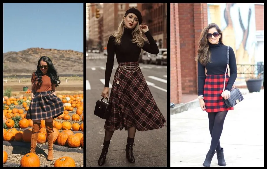 در مورد استایل پاییزی با دامن باید به یاد داشته باشید که چهارخانههای درشت باعث میشود که اندام شما پرتر نشان داده شود، به این معنی که شما را هیکلیتر نشان دهد. بنابراین اگر اندام درشتی دارید بهتر است از چهارخانههای ریزتر استفاده کنید.