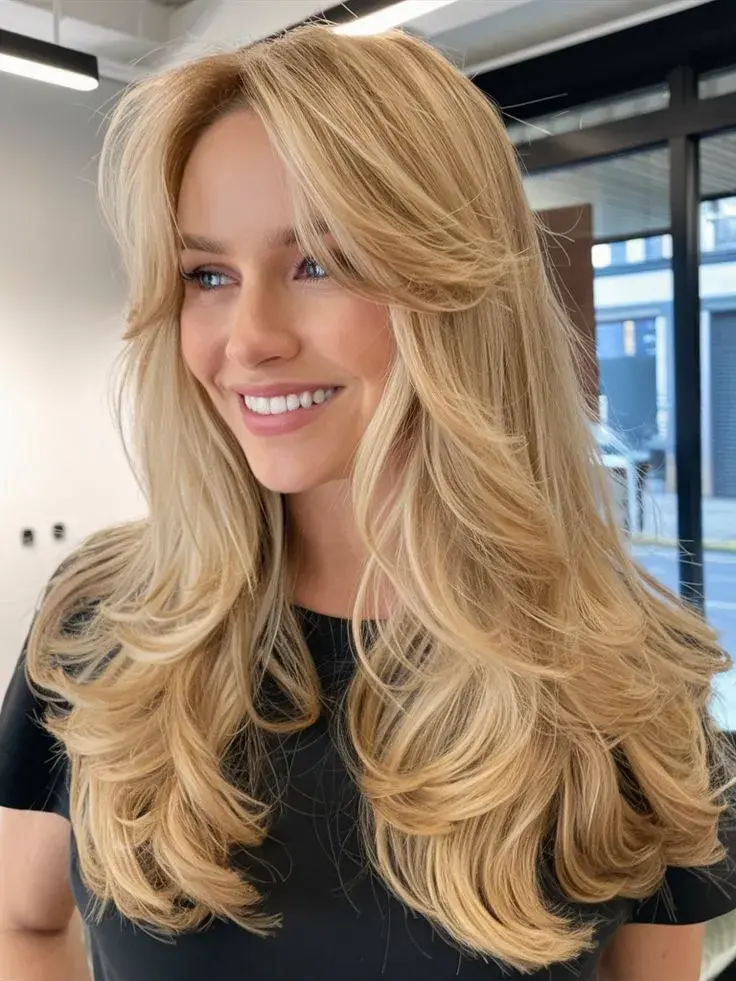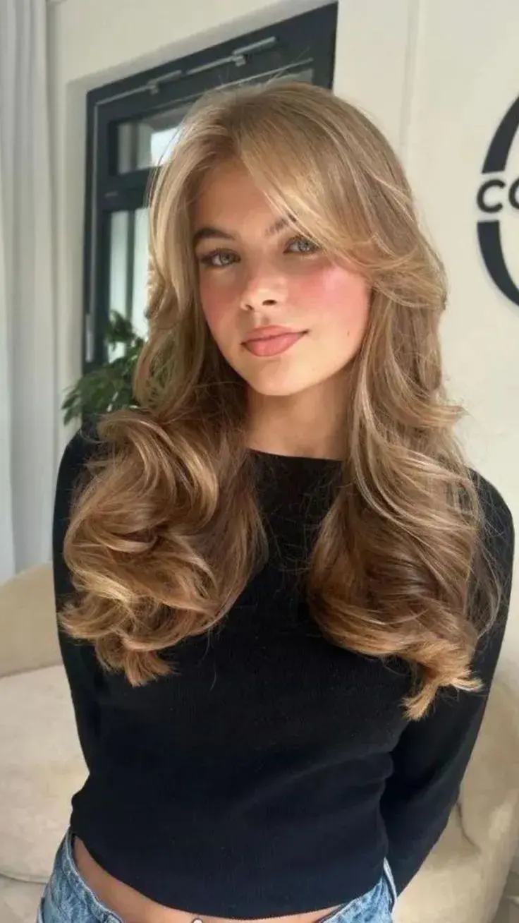 مدل مو فارا بلند همان استایل کلاسیک فاراست که با موهای بلندتر اجرا میشود و شکوه و حجم را توأمان به نمایش میگذارد. در این مدل، قد مو میتواند از زیر شانه تا کمر باشد و لایههای مو معمولاً از حوالی چانه یا شانهها آغاز میشوند تا ضمن حفظ طول مو، حجم و حرکت به آن بدهند. موهای جلو صورت به حالت پردهای یا چتریکناره درمیآیند که به دو سوی صورت حجم میدهد و آن را قاب میکند؛ این ویژگی کمک میکند زوایای صورت ملایمتر و حالت چهره متعادلتر دیده شود. مدل فارا بلند بهویژه برای کسانی که موهای بلند و نسبتاً صاف یا مواج دارند فوقالعاده است، چون با یک براشینگ ساده میتوانند به موجهای پریشان و زیبای دهه ۷۰ دست پیدا کنند. حتی اگر موهای کمی فر داشته باشید، میتوانید با سشوار و برس، فر مو را به حالت موج فارا درآورید و از حجم طبیعی و جذاب آن لذت ببرید. بسیاری از سلبریتیها و فشنشوهای اخیر نیز از این استایل الهام گرفتهاند تا تلفیقی از ظرافت زنانه و حالوهوای نوستالژی را ارائه دهند. مدل مو فارا بلند دخترانه نیز در میان جوانترها طرفدار دارد، زیرا ظاهری رویایی و در عین حال بهروز به موهای بلند میبخشد. اگر موهای بلندی دارید و به دنبال یک تغییر چشمگیر هستید، مدل فارا بلند میتواند بدون کوتاه کردن افراطی، حالتی تازه و شیک به موهایتان بدهد.