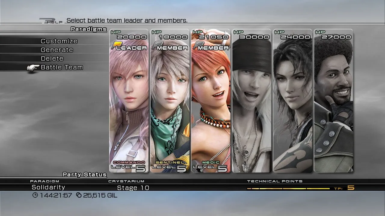 پیدا کردن استراتژیهای مختلف برای هر غولآخر، یکی از جذابترین بخشهای گیمپلی فاینال فانتزی 13 است. برای اینکه در مبارزات پیروز شوید، نیاز به طراحی و استفادهی درست از پارادایمهای خود دارید. تراز گرفتن و آزاد کردن قدرتهای جدید، استفاده از آیتمهای مختلف، خرید تجهیزات و چیزهایی از این قبل که از عناصر همیشگی یک نقشآفرینی هستند هم طبق انتظار در فاینال فانتزی 13 وجود دارند، اما نکتهی عجیب و غریبی در طراحی آنها وجود ندارد و کارشان را انجام میدهند؛ یعنی قرار نیست بخش بزرگی از بازی را مشغول مدیریت تجهیزات و بررسی اعداد و ارقام مختلف باشید.