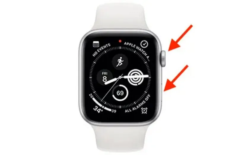 Digital Crown و دکمه کناری را به طور همزمان برای حدود ۱۰ ثانیه فشار دهید و نگه دارید تا صفحه سیاه شود و لوگوی اپل روی صفحه نمایش داده شود. پس از راه اندازی مجدد اپل واچ، بررسی کنید که آیا مشکل شارژ حل شده است یا خیر.
