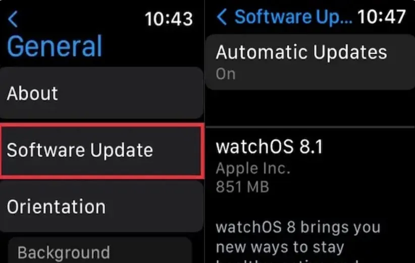 برای آپدیت اپل واچ باید ابتدا به بخش Settings در اپل واچ رفته و سپس به مسیر General »» Software Update بروید. حالا شما باید آخرین نسخه از سیستم عامل watchOS را دانلود و سپس نصب کنید. البته شما میتوانید از مسیر Watch App »» General »» Software Update هم این روند را انجام دهید.