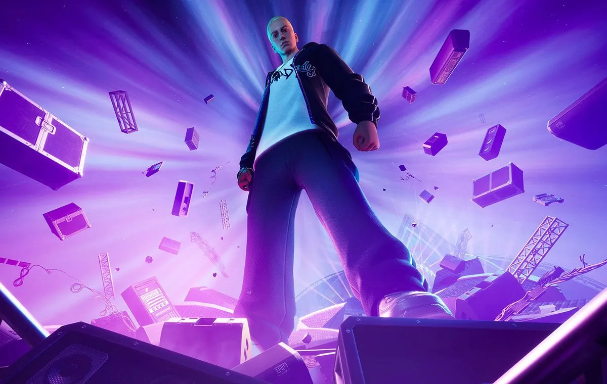 صحبت از امینم شد، بد نیست به اجرای بسیار خوب امینم در پایان رویداد بیگ بنگ فورتنایت هم اشاره کنیم که بسیار زیبا طراحی شده بود. امینم دو اجرا دارد که اجرایی ابتدایی حس و حال اجرای قطعهی Lose Yourself امینم در هشت مایل را تداعی میکند و امینم از نظر ظاهری سبک قدیم خود را دارد و سپس وارد قطعهای جدید میشویم که امینم امروز را نشان میدهد و کارگردانی زیبایی هم دارد و از نظر فنی هم بسیار خوب پیاده شده است.