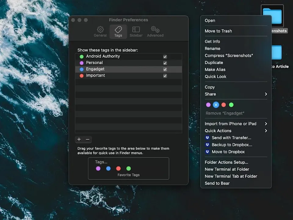 این کار باعث میشود که وقتی بخواهید از آنها استفاده کنید، به راحتی در دسترس باشند. برای افزودن یک برچسب به یک فایل یا پوشه، در حالی که کلید کنترل را نگه داشتهایدروی آن کلیک کنید و برچسب مورد نظر را از منوی کشویی انتخاب کنید. همچنین میتوانید یک فایل را هنگام کار با آن در یک برنامه برچسبگذاری کنید. به خاطر داشته باشید که میتوانید چندین برچسب به یک فایل یا پوشه اعمال کنید و حتی میتوانید آنها را به برنامهها هم اضافه کنید.