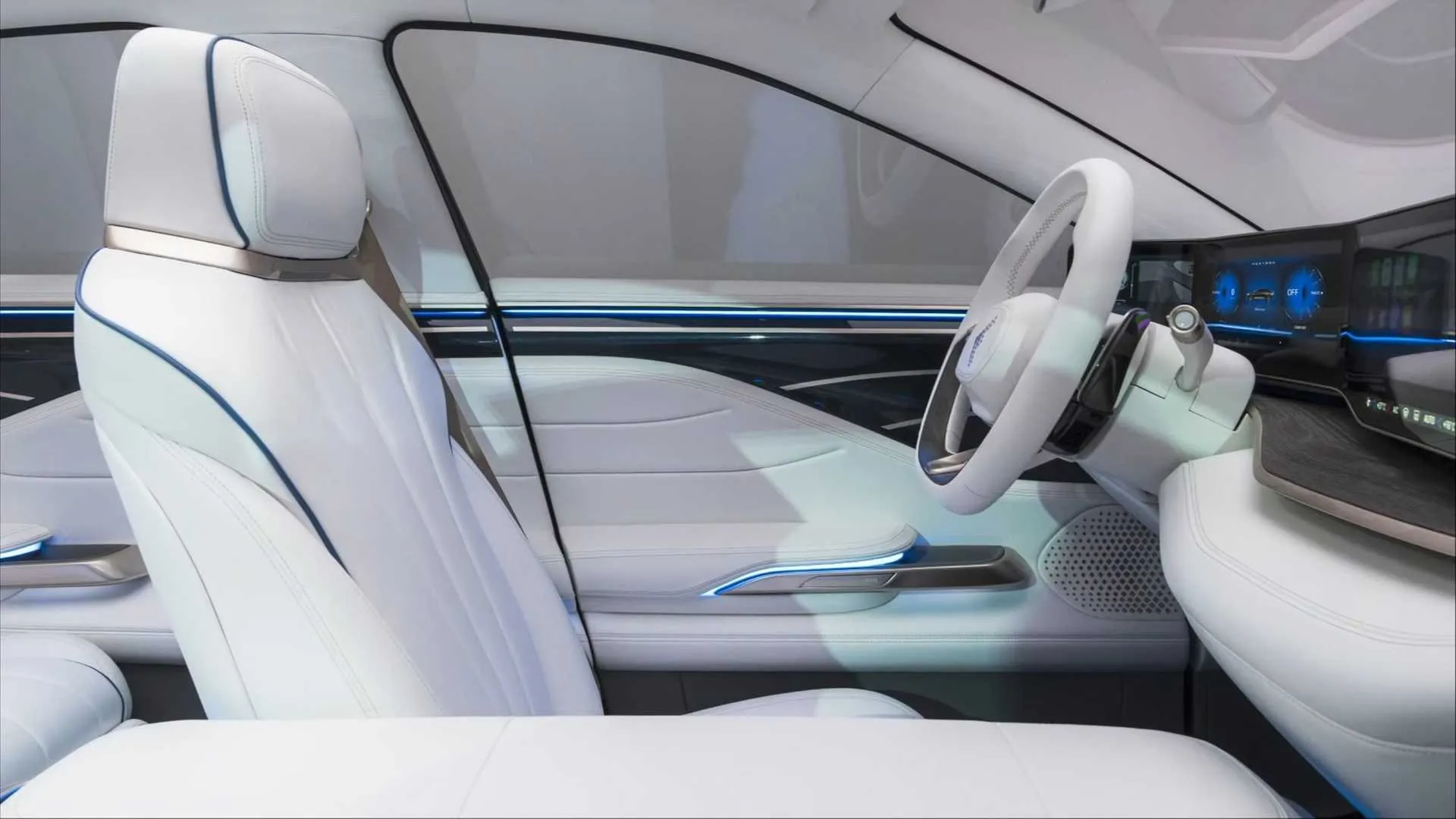 با نزدیک شدن به خودرو، سیستم تشخیص چهره عمل خواهد کرد. این خودرو از یک نمایشگر اصلی برای خوشه ابزار دیجیتال و همچنین سرگرمی و اطلاعرسانی بهره میبرد و یک نمایشگر اضافی هم در سمت چپ راننده قرار گرفته که ظاهرا برای دوربینهای نمای جانبی روی درهاست.