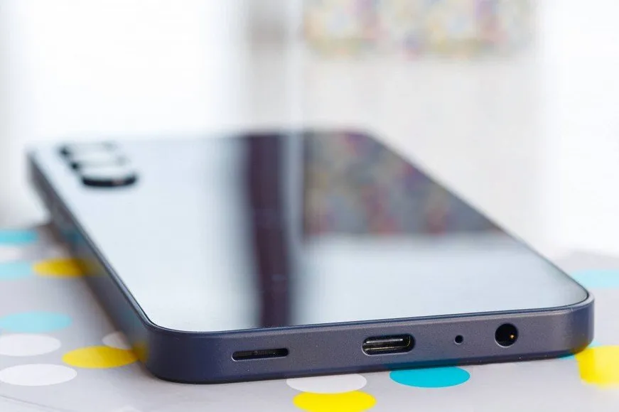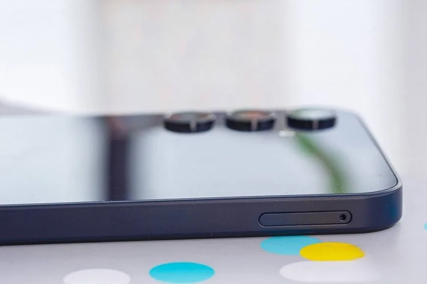 روی فریم سمت چپ، درگاه سیمکارت، روی فریم بالایی حفرهی میکروفون و روی حفرهی پایینی گلکسی A15 هم جک 3.5 میلیمتری هدفون، خروجی بلندگو به سبک گلکسی S24 اولترا، پورت شارژر USB-C و یک حفرهی دیگر مربوط به میکروفون دیده میشود.