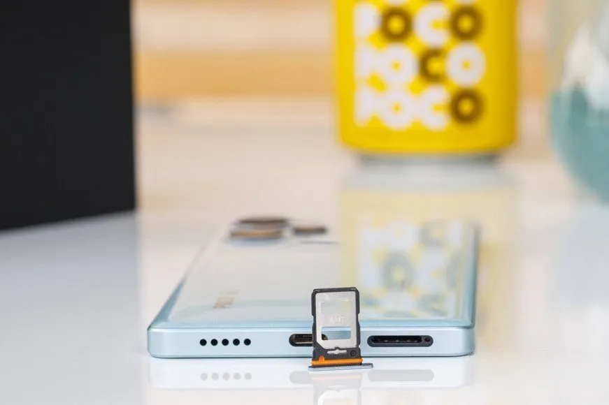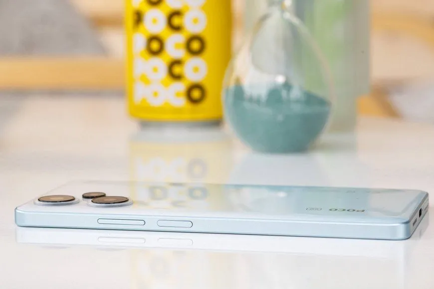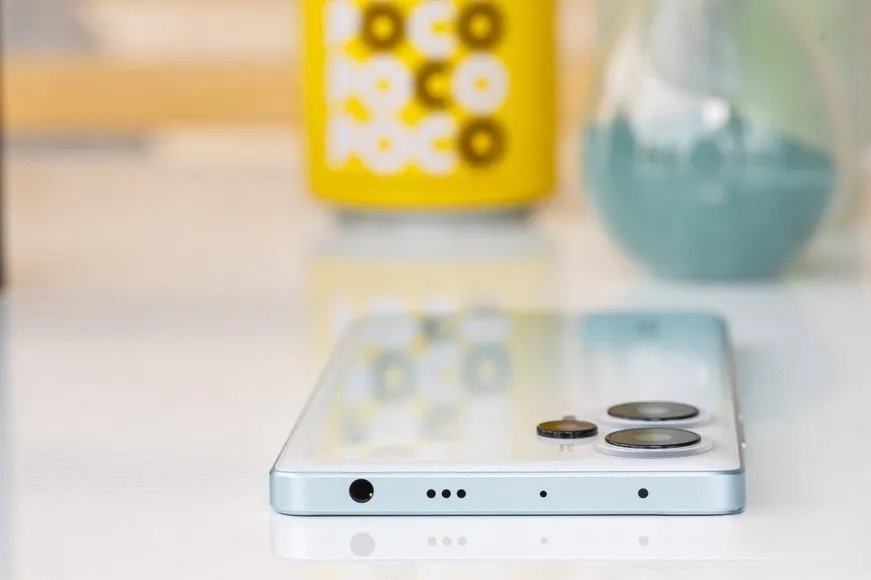 روی فریم سمت راست پوکو F5 اگرچه وضعیت مشابهی را از لحاظ نوع و تعداد کلید شاهد هستیم اما محل تعبیهی آنها برجسته نیست. روی فریم سمت چپ چیزی وجود ندارد، روی فریم بالایی، فرستندهی مادون قرمز، حفرهی میکروفون، خروجی بلندگو و جک 3.5 میلیمتری به چشم میخورند. روی فریم زیری هم خروجی نخست و اصلی اصلی بلندگو، پورت شارژر و درگاه سیمکارت را شاهد هستیم.