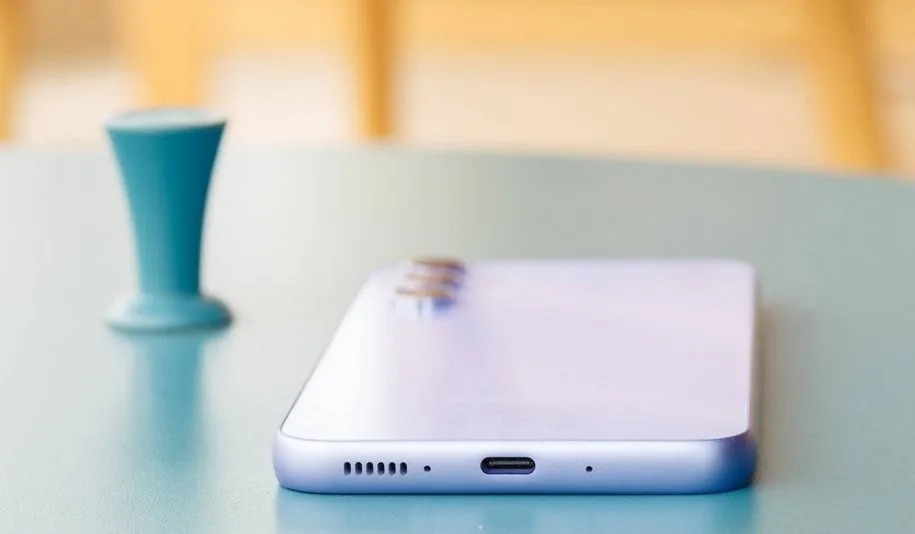 گلکسی A54 روی فریمهای خود پورتها و کلیدهای کمی دارد. فقط یک پورت USB-C در پایین به همراه دو حفرهی مربوط به میکروفون و یک بلندگو، یک حفرهی دیگر در بالا برای میکروفون که در کنار آن درگاه سیمکارت و کارت SD هم به چشم میخورد و در نهایت هم کلیدهای تنظیم صدا و پاور که روی فریم سمت راست تعبیه شدهاند. خبری از جک هدفون هم در این گوشی نیست که البته از نبود آن اصلا متعجب نشدهایم.
