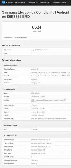 سامسونگ در حال آمادهسازی گلکسی A57 است که بهنظر میرسد از چیپست اگزینوس 1680 با 12 گیگابایت رم و پردازنده گرافیکی Xclipse 550 بهره خواهد برد. این گوشی در تستهای گیکبنچ با سیستمعامل One UI 8.5 و اندروید 16 QPR2 مشاهده شده است. اگزینوس 1680 به نظر میرسد از همان هستههای پردازشی ARM v8 با فرکانسهای 1.9 گیگاهرتز، 2.6 گیگاهرتز و 2.91 گیگاهرتز بهره میبرد. اگرچه هنوز عملکرد نهایی آن مشخص نیست، گلکسی A57 در تستهای اولیه عملکرد بهتری نسبت به نسل قبلی خود داشته است، با این حال امتیاز تکهستهای کمی پایینتر از گلکسی A56 بوده است.