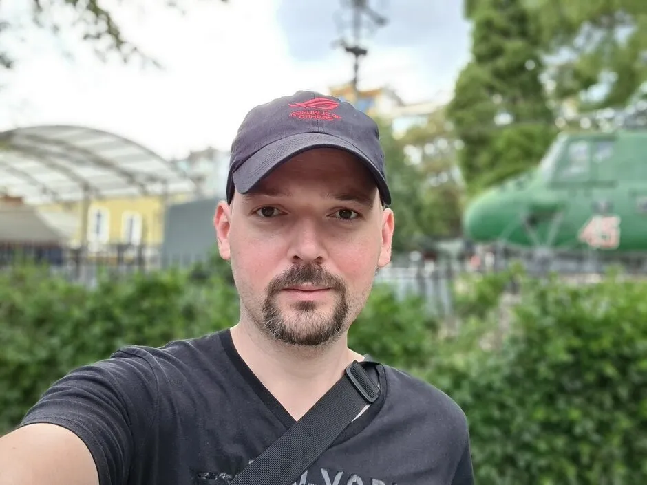 تصویر سلفی بعدی، توانایی گوشی در ثبت تصاویر پرتره را به نمایش میگذارد. جایی که میخواهیم توانایی گوشیها را در جداسازی پس زمینه از سوژه اصلی بسنجیم که خوشبختانه انتخاب گوشی برنده آنقدرها کار مشکلی نبود. مثلا گلکسی نوت 20 با اختلاف بسیار کمی از همه گوشیهای دیگر عملکرد ضعیفتری داشت چون در نواحی گوش کاملا اختلالات تصویر به چشم میخورد. همچنین بخشی از بند کیف هم تار شده و در واقع بخشی از پس زمینه به حساب آمد.