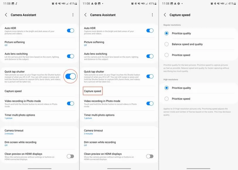اپلیکیشن دوربین پیشفرض سامسونگ کیفیت بسیار خوبی دارد و امکانات زیادی را هم در اختیارتان قرار میدهد. اما اپلیکیشن Camera Assistant تجربهی کار با دوربین گوشی را به یک سطح دیگری میبرد. با استفاده از این اپلیکیشن، میتوانید گزینههای مختلفی را شخصیسازی کنید، از جمله افزایش سرعت ثبت تصویر و فعالسازی قابلیت Quick Tap Shutter برای ثبت سریع تصاویر به محض ضربه زدن روی شاتر.