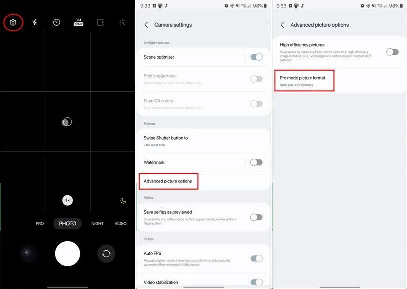 - از راست به چپ اسکرول کنید تا حالت جدیدی تحت عنوان Pro را ببینید.