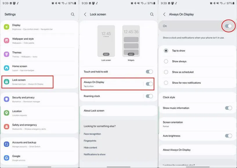 - به صورت پیشفرض، قابلیت Tap to show انتخاب شده به این معنا که باید روی صفحهی خاموش ضربه بزنید تا نمایشگر همیشه روشن ظاهر شود.
