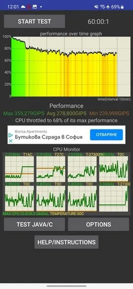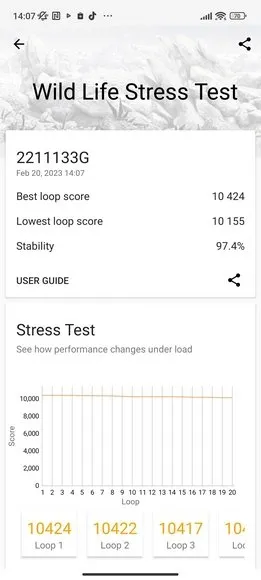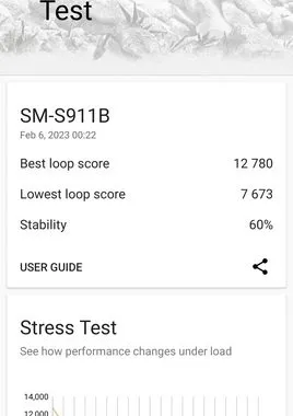 در بخش سختافزار چون هر دو گوشی از یک تراشه بهره میبرند، بررسی بنچمارکها عملا کار بیهودهای خواهد بود چون در نهایت باز هم یک تفاوت نامحسوس را بین آنها شاهد خواهیم بود. اما آنچه که بسیار اهمیت دارد، پایداری آنها زیر فشار سنگین است. در زیر میتوانید پایداری دو پردازنده را هم مشاهده کنید که به وضوح مشخص است شیائومی 13 زیر فشار سنگین تا چه اندازه میتواند قدرت خود را حفظ کند در حالی که گلکسی S23 بخش بزرگی از توان خود را از دست میدهد (تقریبا 40٪ از توان پردازنده و گرافیک این گوشی بعد از یک ساعت فشار سنگین کاسته میشود اما شیائومی 13 با 90٪ توانش تست را به پایان رساند). البته در دنیای واقعی، هیچوقت چنین فشاری به گوشیها وارد نمیشود اما به صورت کلی، شیائومی 13 در مقایسه با گلکسی S23 همراه بهتری در انجام کارهای پرفشار به صورت مداوم خواهد بود.